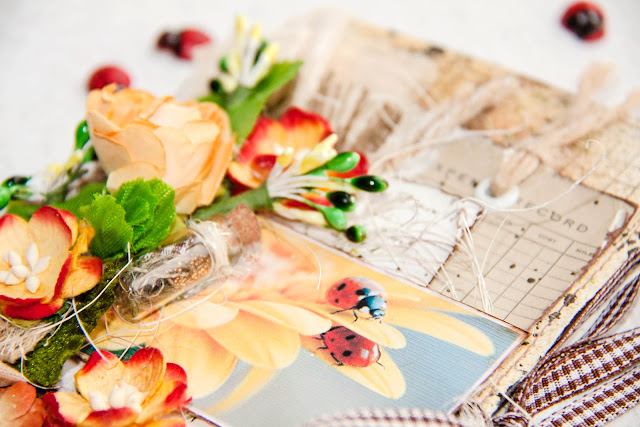 Девочки, летний вам привет! Хотя моя погода за окном несколько дней говорит обратное ))) Сегодня я покажу вам открытку, которую сделала как приглашенный дизайнер Воронежского скрап-клуба, задание у девочек летнее и яркое - это рецепт с божьей коровкой/зеленым/цветком. Я взяла все ингредиенты и смешала )))) И вот что получилось: